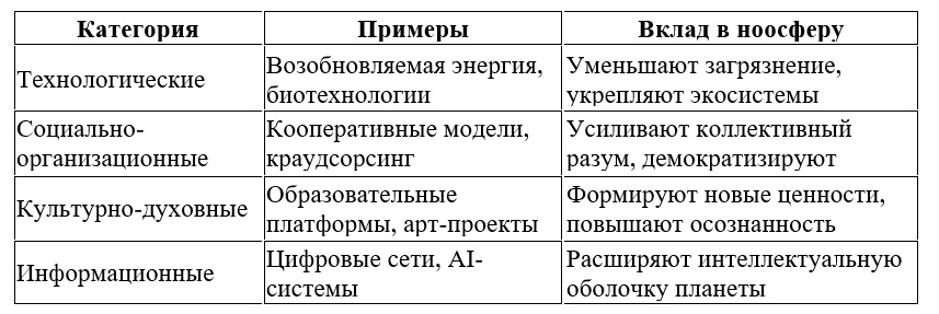 Табл. 1. Ноосферная классификация инноваций