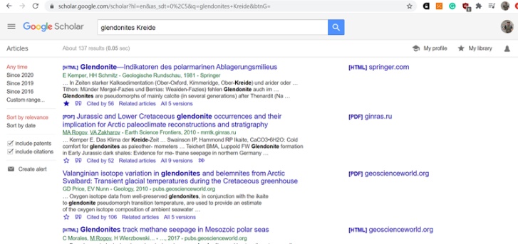 Для поиска публикаций наиболее полезными являются расширенные настройки и операторы, позволяющие ограничивать поиск файлами определённого формата (например, pdf c помощью filetype:pdf ), определёнными сайтами / доменами. Например, если мне понадобится посмотреть, на каких китайских сайтах выложены публикации в формате pdf, где упоминаются аммониты, то поможет вот такой запрос: ammonites filetype:pdf site:cn. Ну а "+" и "-" используются для указания обязательных или нежелательных терминов. К примеру, при поиски информации по головоногим моллюскам — аммонитам обычно не нужны сведения об одноимённом взрывчатом веществе или племени, некогда обитавшем на Ближнем Востоке и регулярно упоминающемся в Библии. Соответственно, запрос можно подкорректировать таким образом: аммониты filetype:pdf -взрывчатка -Библия