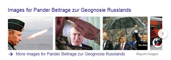 Ка известно, в гугле любят пошутить. Вот такой у меня однажды вылез результат при попытке найти книгу Pander, C. H. (1830). Beiträge zur Geognosie des Russischen Reiches. St.Petersburg, Karl Kray. 150 S.